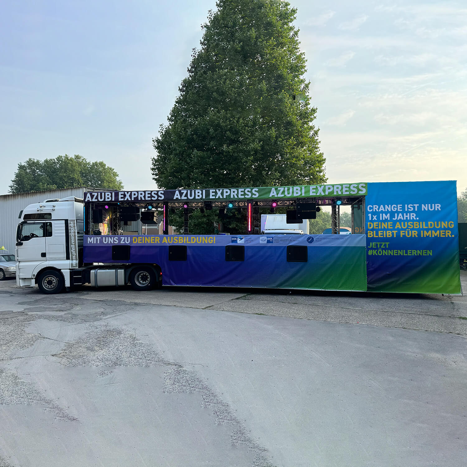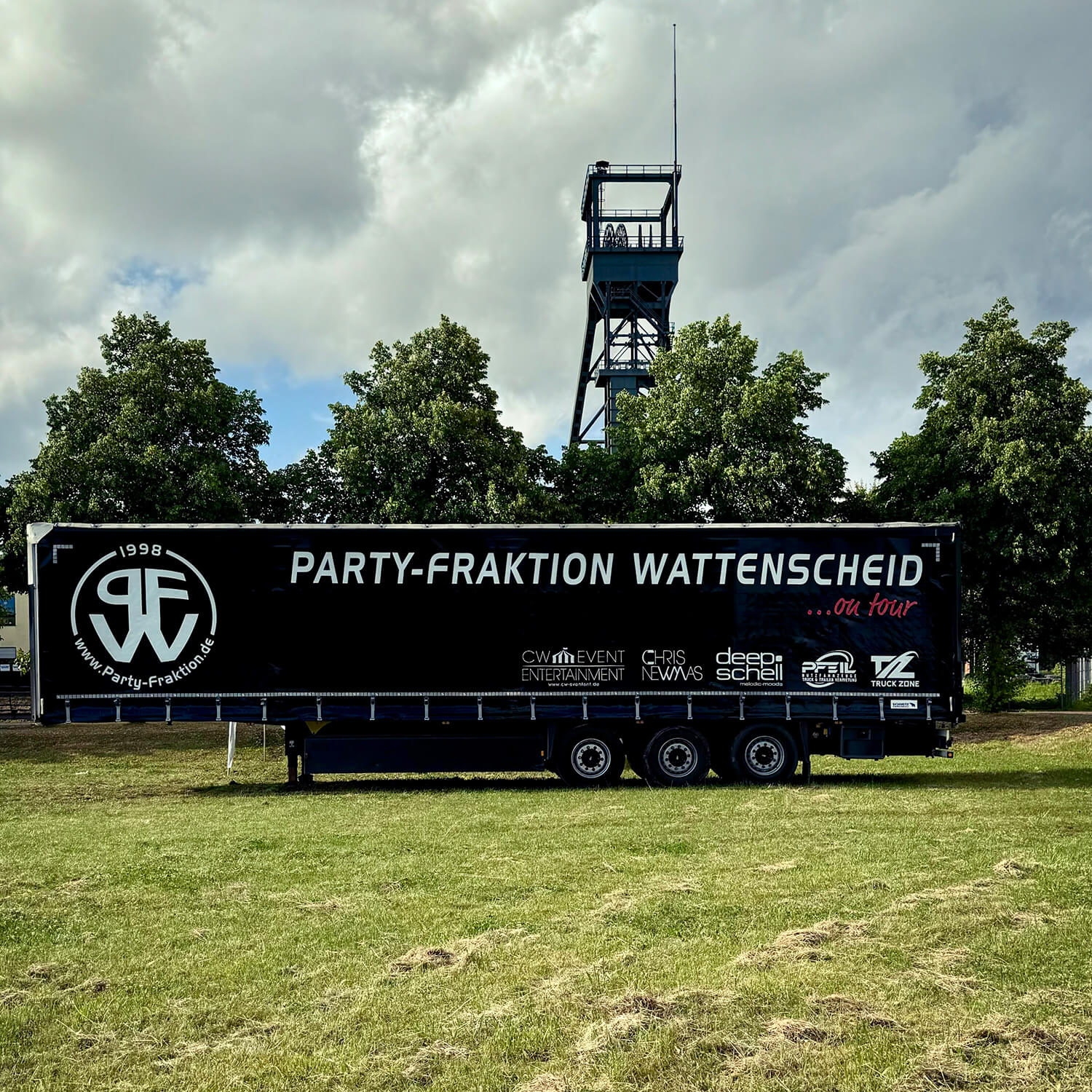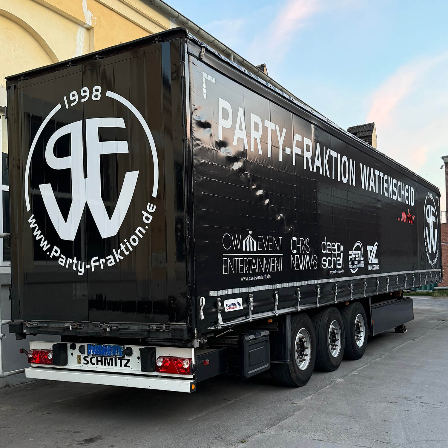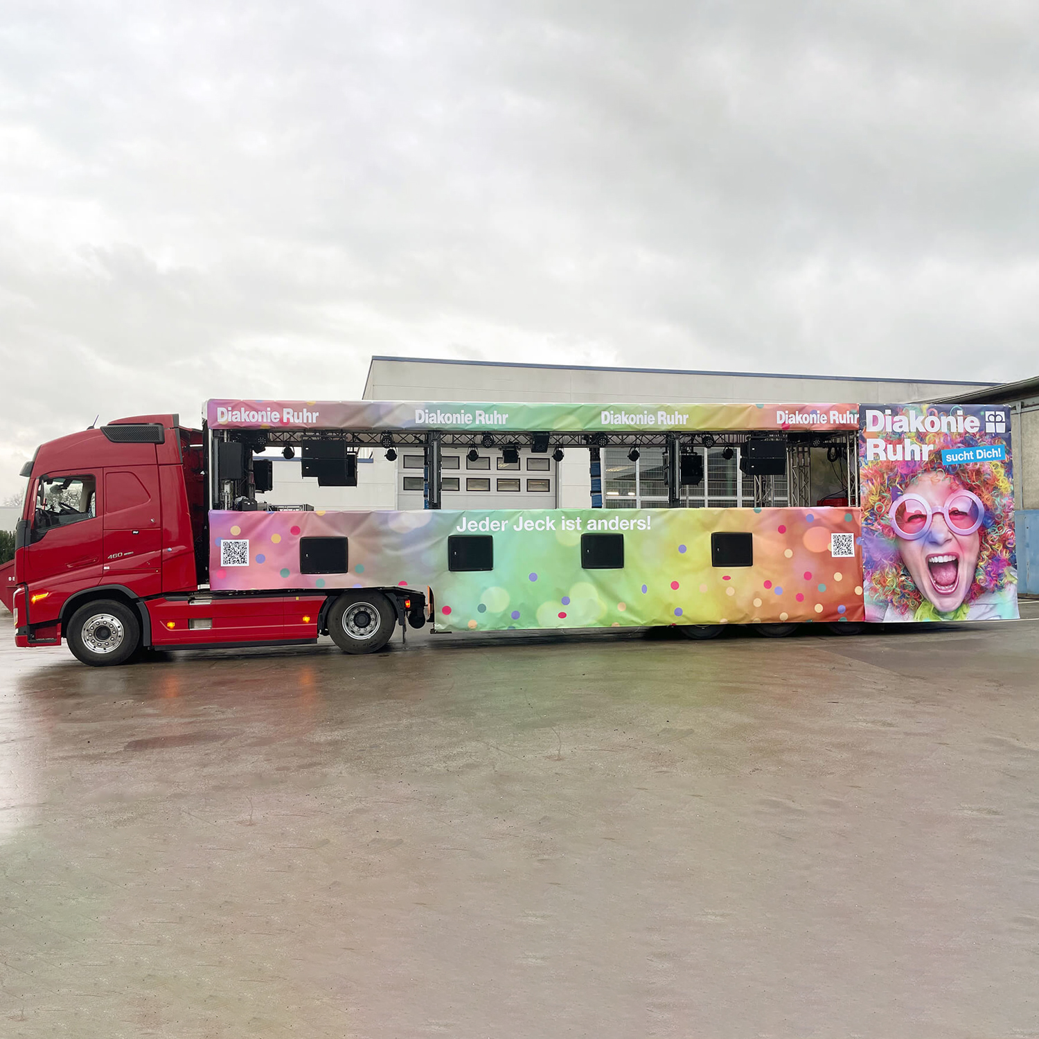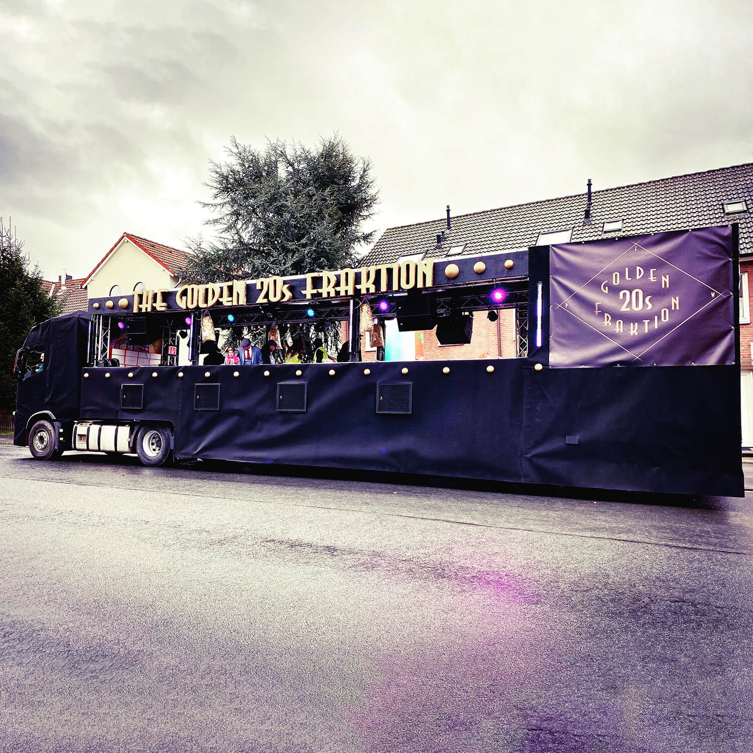 Unser 40-Tonner Planauflieger ist ein vielseitiges Highlight, das jede Parade und jedes Festival bereichert.