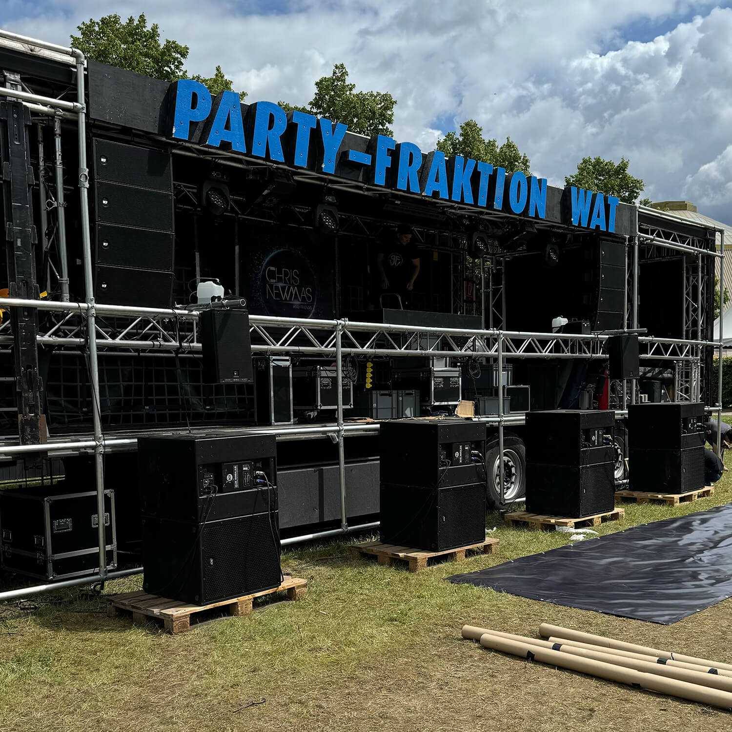 • 6x RCF 910 (je 1100 Watt), 1x 40 KVA Stromerzeuger